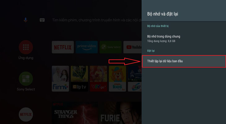 Hướng dẫn khôi phục cài đặt gốc trên tivi Sony hệ điều hành Android 8.0