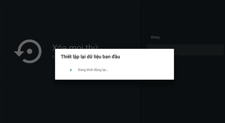 Bước 8: Tivi đang thiết lập lại ban đầu. Tại bước này, bạn chỉ cần chờ đợi vài phút là có thể sử dụng tiếp tivi với cài đặt gốc.