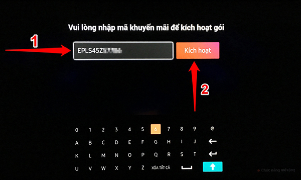 - Bạn nhập mã code vào ô khuyến mãi để kích hoạt gói. Mã code sẽ được phát đến bạn sau khi bạn mua tivi Samsung tại siêu thị.