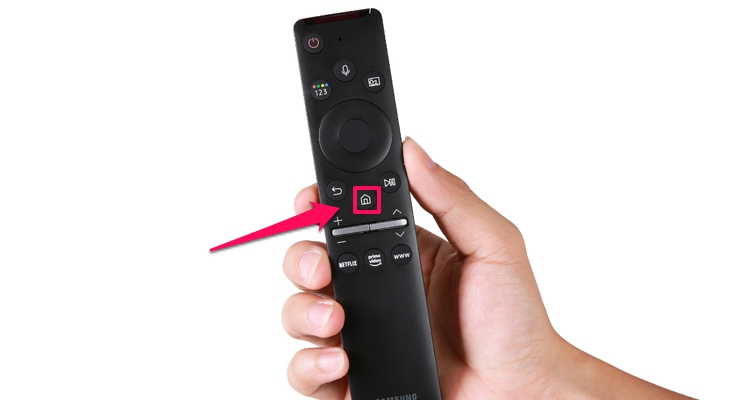 Bước 1: Nhấn vào nút "hình ngôi nhà" trên remote để tivi chuyển về giao diện màn hình chính.
