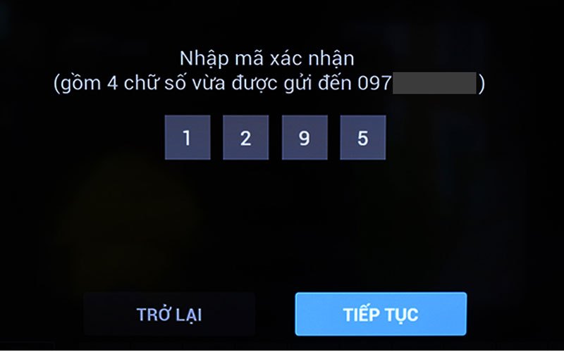 Bước 6: Nhập mã số gửi đến để kích hoạt gói Fim miễn phí trên Smart Tivi Sony.