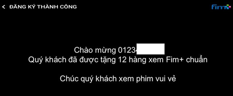 Bước 10: Khi kích hoạt thành công sẽ có thông báo chúc mừng bạn ddaxd kích hoạt gói Fim miễn phí trên Smart Tivi Sony.