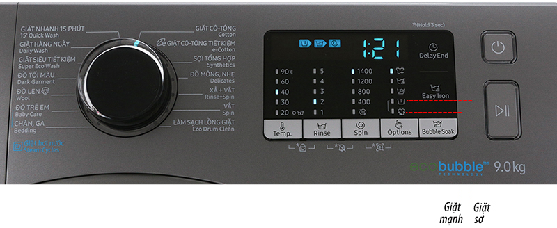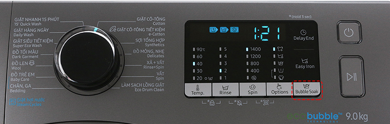 Tính năng ngâm bong bóng sẽ giúp loại bỏ một lượng lớn các vết bẩn cứng đầu bám trên quần áo bằng cách ngâm kỹ đồ giặt trong bong bóng nước.