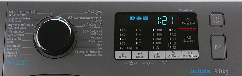 - Nhấn liên tục "DelayEnd" đến mức thời gian mong muốn (tối thiểu 1 giờ, tối đa 24 giờ). Mỗi lần nhấn thay đổi 1 giờ.
