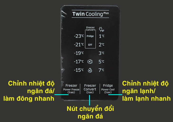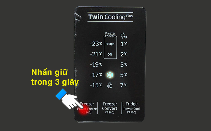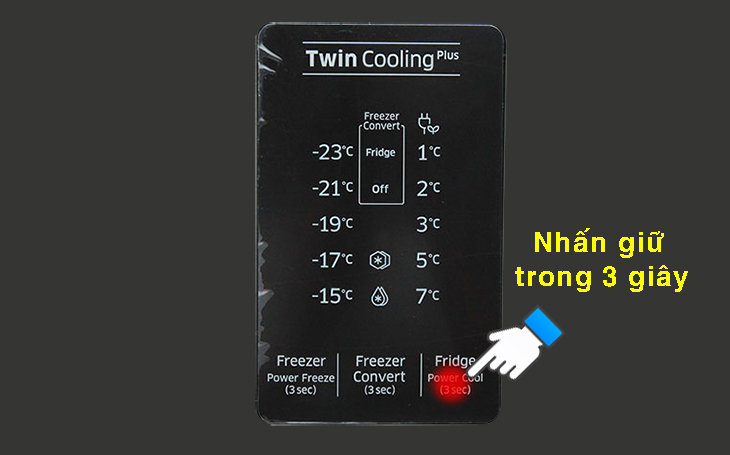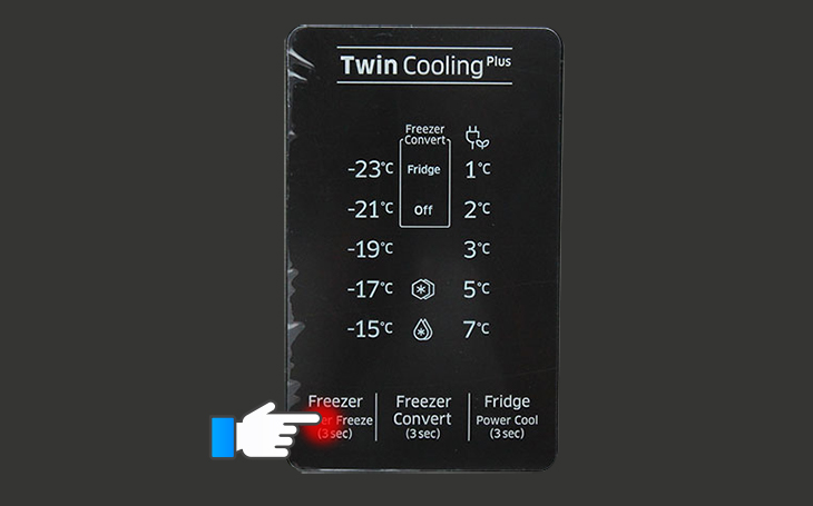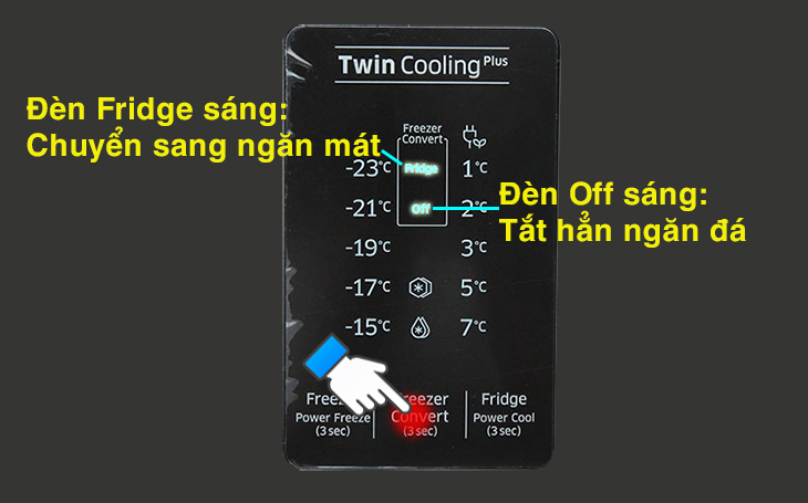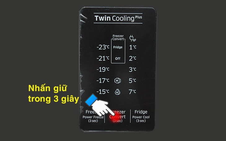 Bước 1: Để chuyển đổi ngăn đá sang ngăn mát hoặc tắt hẳn, trước tiên bạn nhấn và giữ nút "Freezer Convert" trong 3 giây.