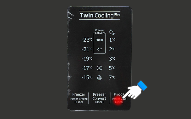 Nhấn nút "Fridge", mỗi lần nhấn nút này, nhiệt độ và đèn báo hiển thị nhiệt độ tương ứng phía trên sẽ thay đổi theo. Bạn có thể tủy chỉnh mức độ theo lượng thực phẩm cất trữ trong tủ lạnh cho phù hợp và tiết kiệm.
