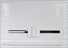 Bộ điều chỉnh này sẽ nằm ở ngăn đông của tủ với 3 chế độ, nếu gạt về bên trái "REFRIGE.MAX" thì gió sẽ ưu tiên cho ngăn mát, gạt về bên phải "FREEZER MAX" thì gió ưu tiên cho ngăn đông, chế độ "NORMAL" thì sẽ chia đều cho cả 2 ngăn.