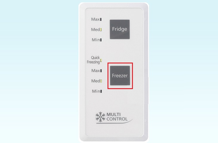 Ấn nút "Freezer" chọn các mức "Min - Med - Max" để chọn nhiệt độ mong muốn, trong đó mức Min là ít lạnh nhất, Max là lạnh nhất.