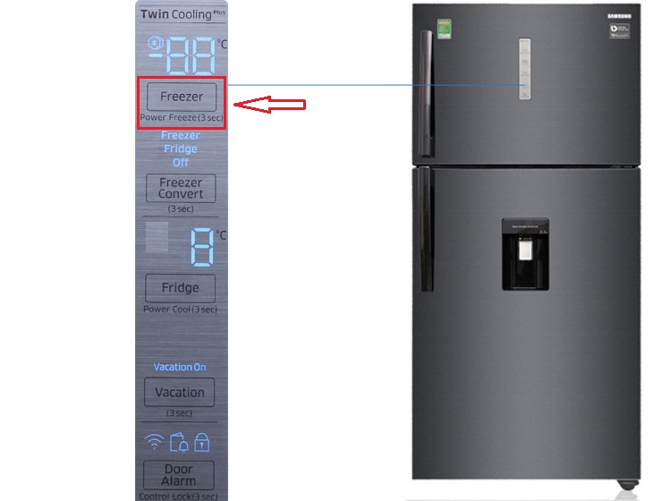 Lưu ý khi dùng tính năng này sẽ làm tăng lượng tiêu thụ điện, nếu không muốn dùng vẫn có thể tắt tính năng này bằng cách giữ nút "Freezer" 3 giây.