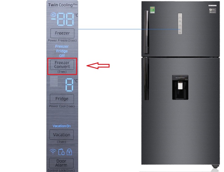 6. Chỉnh chế độ Freezer Convert(Chuyển đổi ngăn đá)