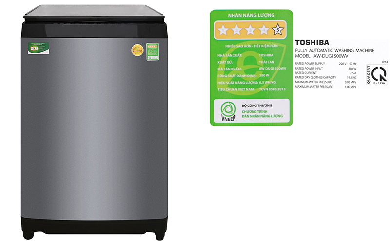 Để xác định chính xác thông tin model của máy giặt, bạn có thể quan sát tem năng lượng hoặc nhãn tên được dán trên máy.