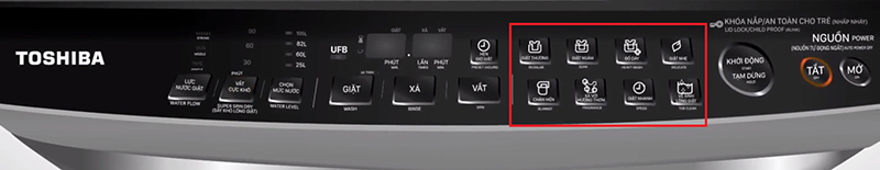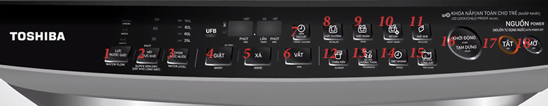 2. Tổng quan các tính năng trên bảng điều khiển máy giặt Toshiba AW-DUG1500WV
