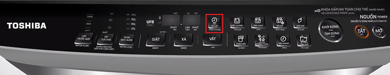 - Nhấn liên tục Hẹn giờ giặt đến mức thời gian mong muốn (tối thiểu 2 giờ, tối đa 24 giờ. Mỗi lần nhấn tăng 1 giờ).