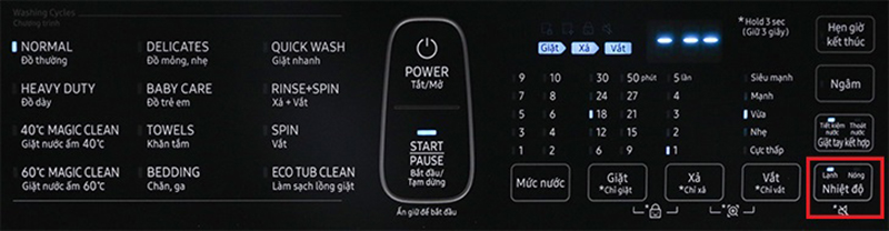 Nút Nhiệt độ sẽ cung cấp cho bạn 2 tùy chọn nhiệt độ nước giặt: