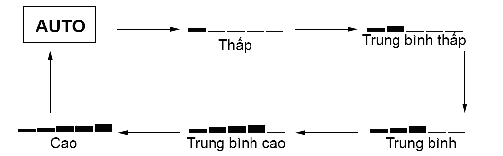 Nhấn "Fan" để điều chỉnh tốc độ quạt theo các mức sau