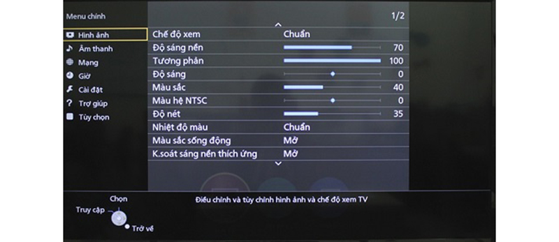 Bước 1: Nhấn vào nút “Menu” trên remote để vào Menu chính.