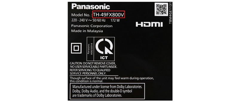 Bạn có thể kiểm tra Model của tivi Panasonic trên tem dán ở mặt sau của tivi. Trên tem dán bắt đầu với dòng chứ Model No.: kế tiếp là dãy số tên modem.