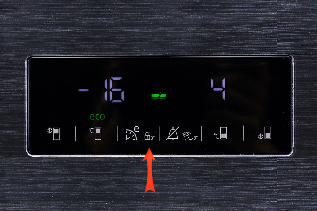 Chức năng khóa bảng điều khiển giúp bạn ngăn việc thay đổi cài đặt nhiệt độ của tủ lạnh đã cài đặt trước đó và cũng để tránh trẻ nhỏ nghịch phá bảng điều khiển.