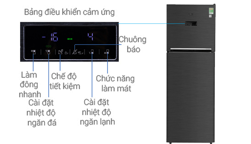 1. Tên của các nút trên bảng điều khiển tủ lạnh Beko RDNT360E50VZWB