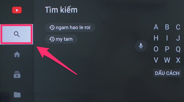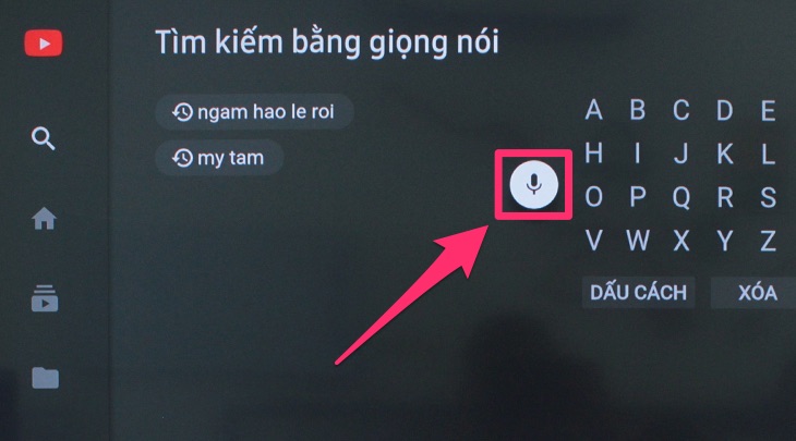 Bước 5: Lúc này bạn nút giữ nút "Micro" trên Remote thông minh, đưa miệng lại gần phần đầu Remote và nói thông tin mà bạn muốn Youtube tra cứu.