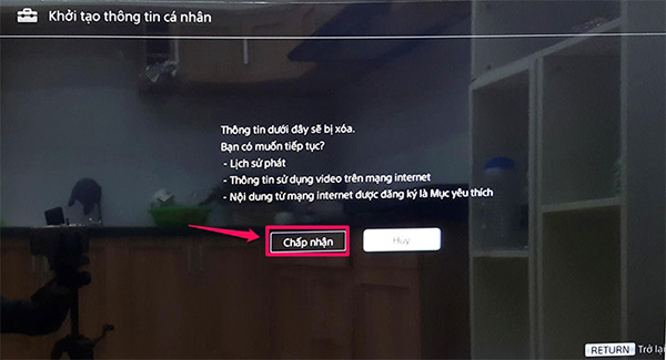 Bước 4: Lúc này, tivi sẽ xóa dữ liệu cá nhân. Việc này sẽ mất nhiều thời gian, sau đó bạn tiếp tục chọn vào ô Chấp nhận.
