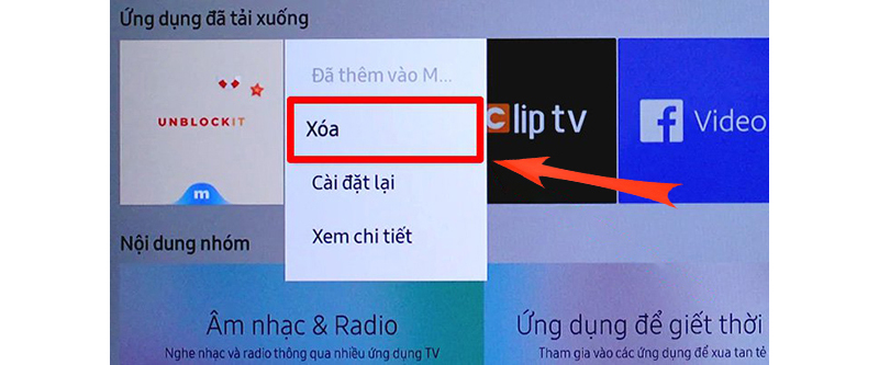 3. Các bước xóa ứng dụng đã cài trên Smart tivi Samsung 2018