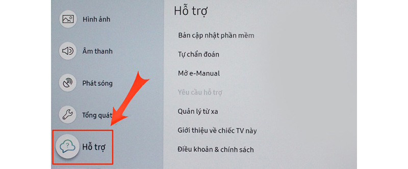 Bước 3: Bạn chọn xuống phần "Hỗ trợ".