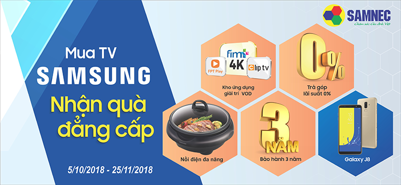 Ngấp tràn ưu đãi khi mua Tivi Samsung tháng sinh nhật Samnec. Quý khách mua Tivi Samsung tặng ngay nồi điện và máy xay thịt đa năng