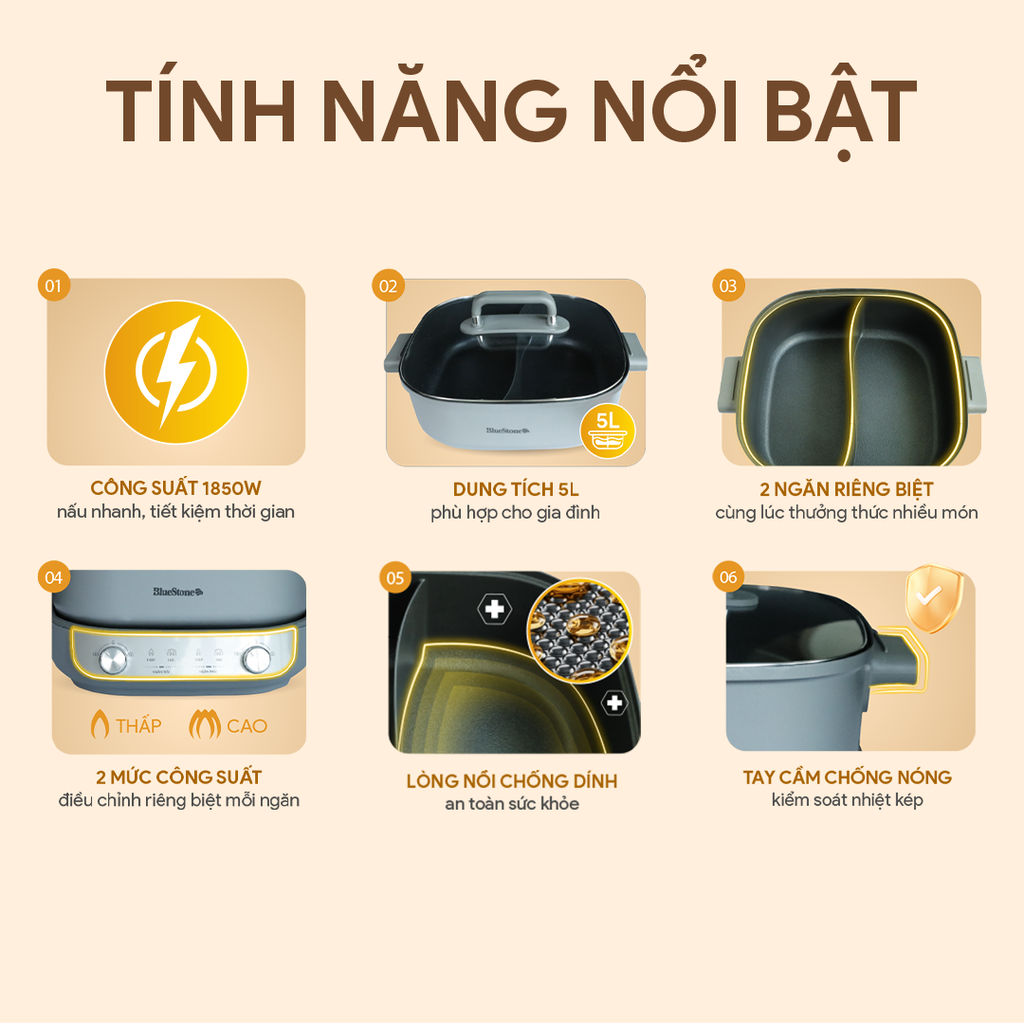 Nồi lẩu điện 5 lít BlueStone MPB-7257 Cung cấp bởi CÔNG TY TNHH ĐIỆN TỬ ĐẠI QUANG MINH