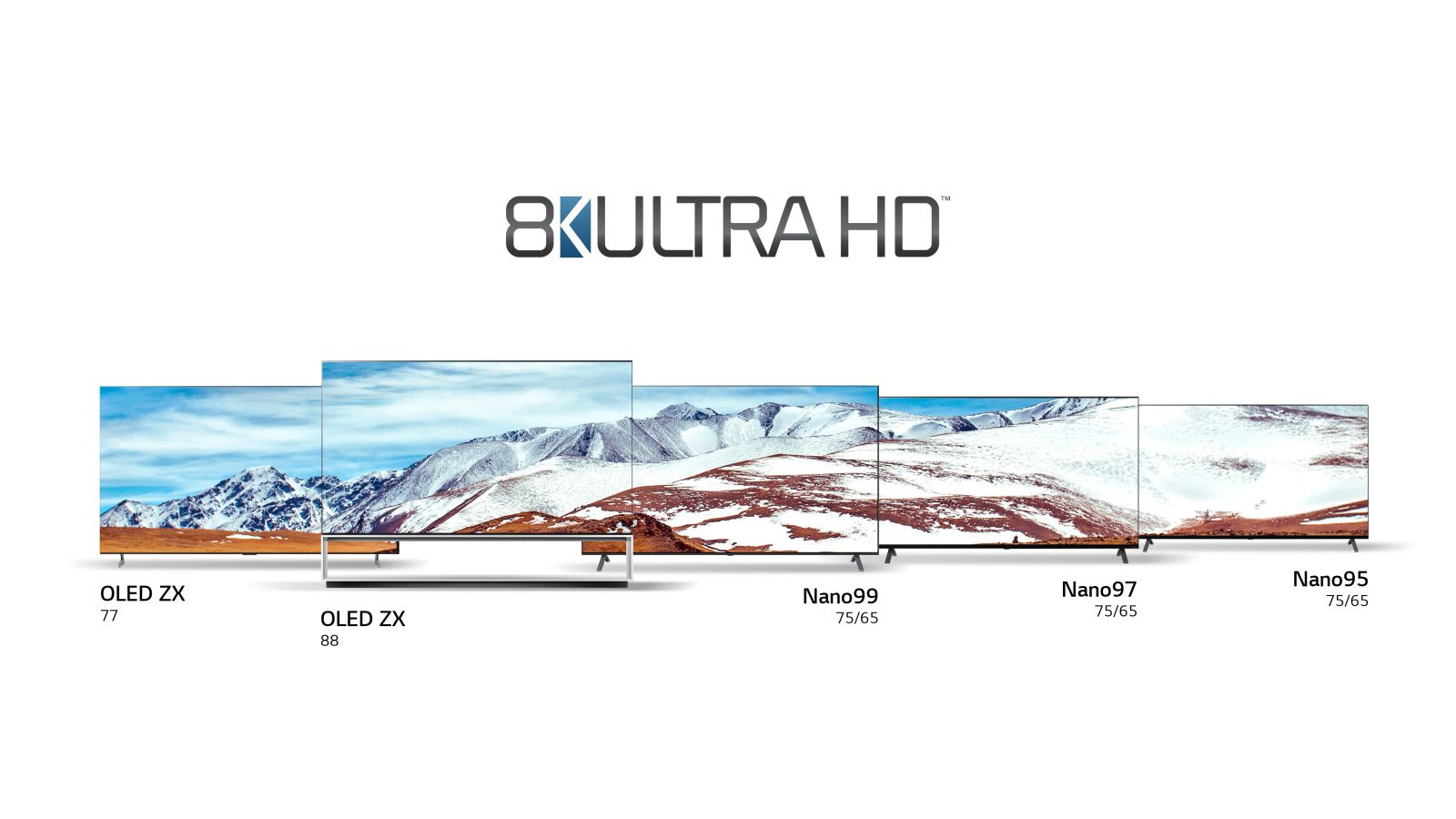 Dòng sản phẩm đa dạng năm 2020 bao gồm LG SIGNATURE OLED 8K TV cao cấp vớ 88 và 77 inch (model 88/77 OLED ZX) và LG NanoCell TV tiên tiến (model 75/65 Nano99, 75/65 Nano97, 75/65 Nano95), với mọi mẫu vượt qua định nghĩa 8K Ultra HD chính thức mới của ngành do Hiệp hội Công nghệ Người tiêu dùng (CTA) đặt ra yêu cầu ngưỡng tối thiểu 50% CM. Các phòng thí nghiệm độc lập đáng tin cậy như TÜV Rheinland đã xác nhận rằng LG SIGNATURE OLED 8K TV và LG NanoCell 8K TV vượt qua định nghĩa này.