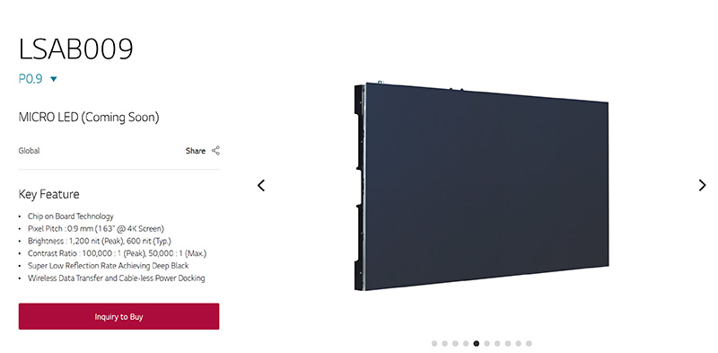 Rất tiếc, trang chủ LG mới chỉ cho biết đây là sản phẩm microLED và chưa có mốc thời gian cụ thể. Có thể họ sẽ bán ra ngay trong năm nay. Trước đó tại triển lãm CES, đại diện hãng xác nhận họ đặt mục tiêu thương mại microLED vào năm 2021, bán theo hình thức B2B.