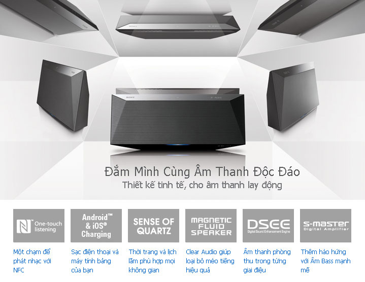 Một hệ thống âm thanh tất cả-trong-một nổi bật với thiết kế sang trọng 'Sense of Quartz' được kết hợp bởi các dạng hình học táo bạo. Cùng với công nghệ loa chất lỏng từ mang đến cho bạn chất lượng âm thanh trong trẻo, rõ ràng đến kinh ngạc mà bạn chưa từng được thưởng thức trước đây.