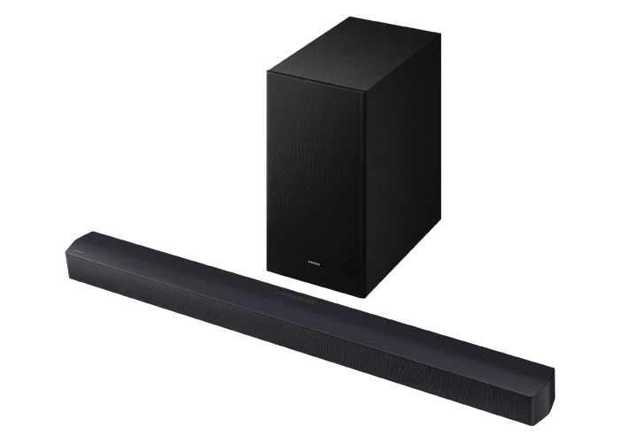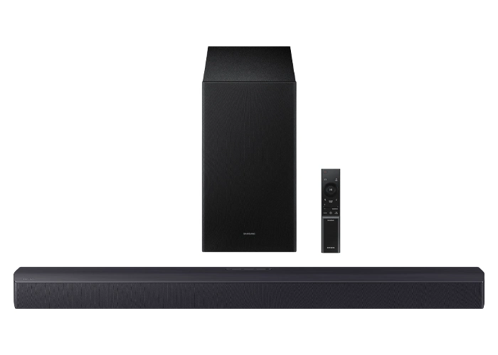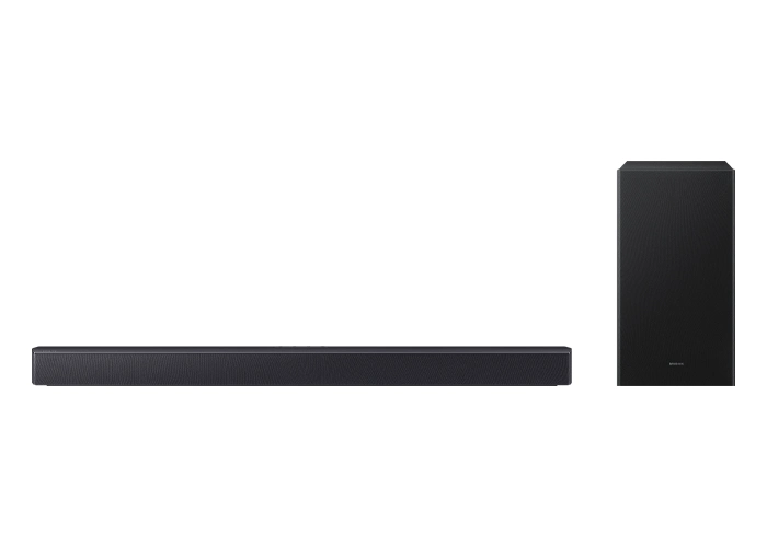 - Loa thanh Samsung B-Series HW-B450 mang đến một hệ thống âm thanh 2.1 kênh, bao gồm một loa thanh chính có thiết kế hiện đại, thanh lịch, dễ dàng hòa hợp với mọi không gian TV và một loa siêu trầm không dây đi kèm.