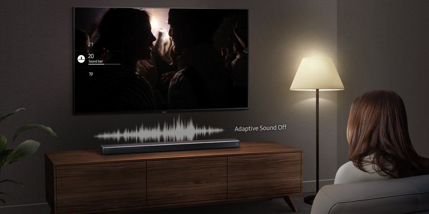 Loa Thanh Samsung tự động phân tích và tối ưu âm thanh trên từng khung hình hiển thị tương ứng. Với khà năng điều chỉnh chế độ â thanh tự động (Adaptive Sound) khiến các thanh âm trở nên sắc nét dù cho âm lượng đang ở mức thấp, cho phép bạn lắng nghe rõ ràng mọi nội dung hoặc cuộc hội thoại.