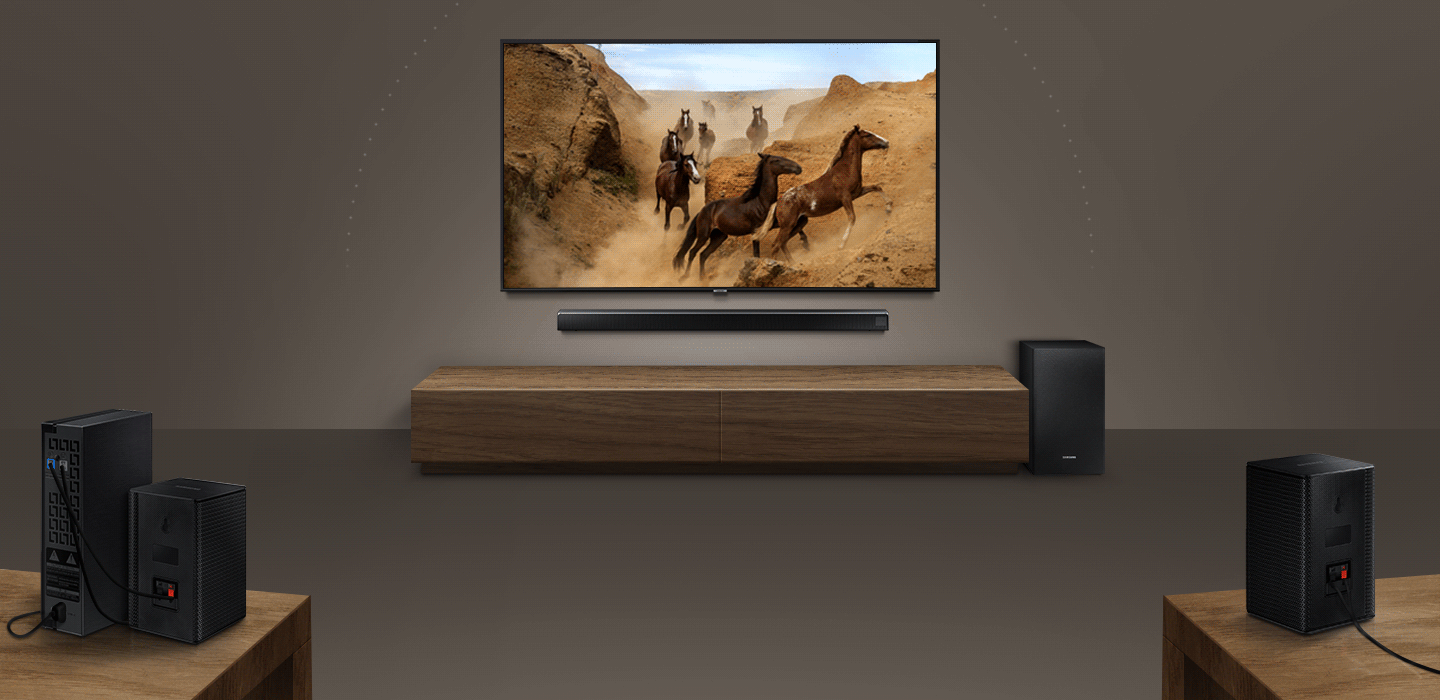 Loa Thanh Samsung tự động phân tích và tối ưu âm thanh trên từng khung hình hiển thị tương ứng. Thoải mái cuồng nhiệt cùng những trận cầu kịch tính hay dễ dàng lắng nghe trọn vẹn những cuộc hội thoại trong phim với thanh âm sắc nét phát ra từ Loa Thanh.