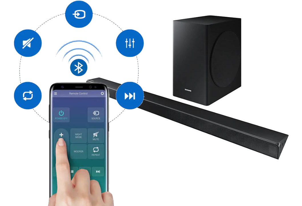 Điều khiển Loa Thanh dễ dàng trên điện thoại di động và máy tính bảng chạy hệ điều hành Android™ với ứng dụng Quản Lý Âm Thanh Từ Xa của Samsung. Chỉ cần kết nối sử dụng Bluetooth™ để điều khiển tất cả các tính năng chính của Loa Thanh và tận hưởng những bài hát yêu thích trên thiết bị di động thông qua một ứng dụng duy nhất.