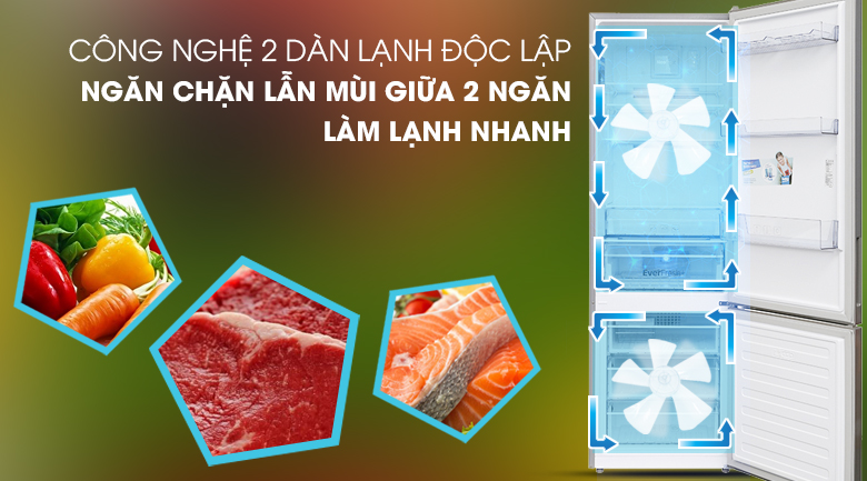 - Ngăn chặn lẫn mùi giữa các ngăn nhờ công nghệ NeoFrost Technology hai dàn lạnh độc lập