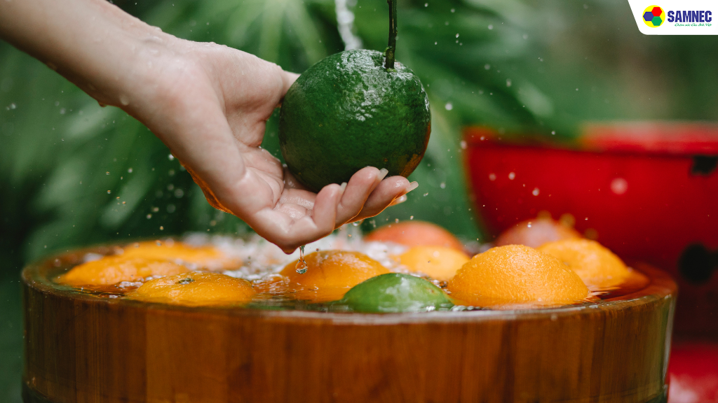 Nhiều người lầm tưởng rằng trái cây phải được rửa bóng loáng trước khi bày để mâm ngũ quả trông đẹp hơn. Tuy nhiên, cách làm này dễ khiến trái cây nhanh héo và không giữ được lâu.