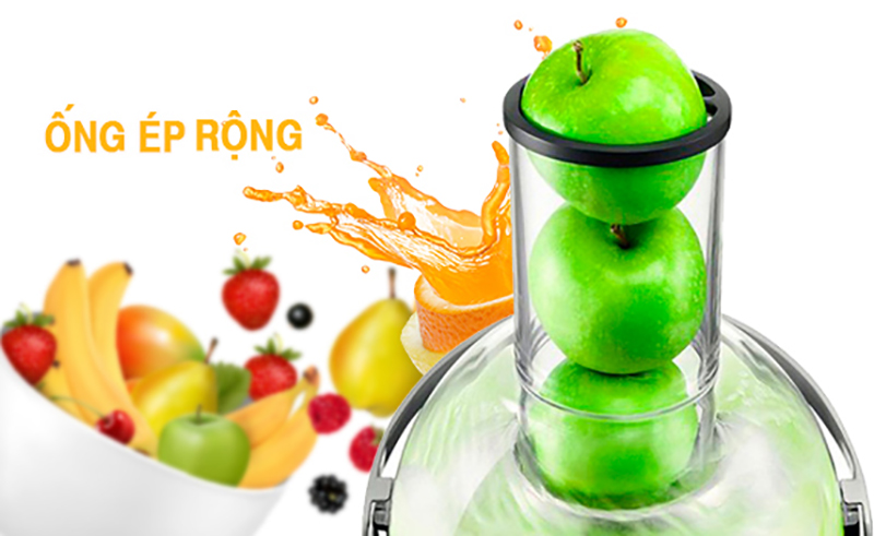 Ống tiếp nguyên liệu lớn cho phép ép các loại rau và trái cây lớn không cần phải cắt trước.