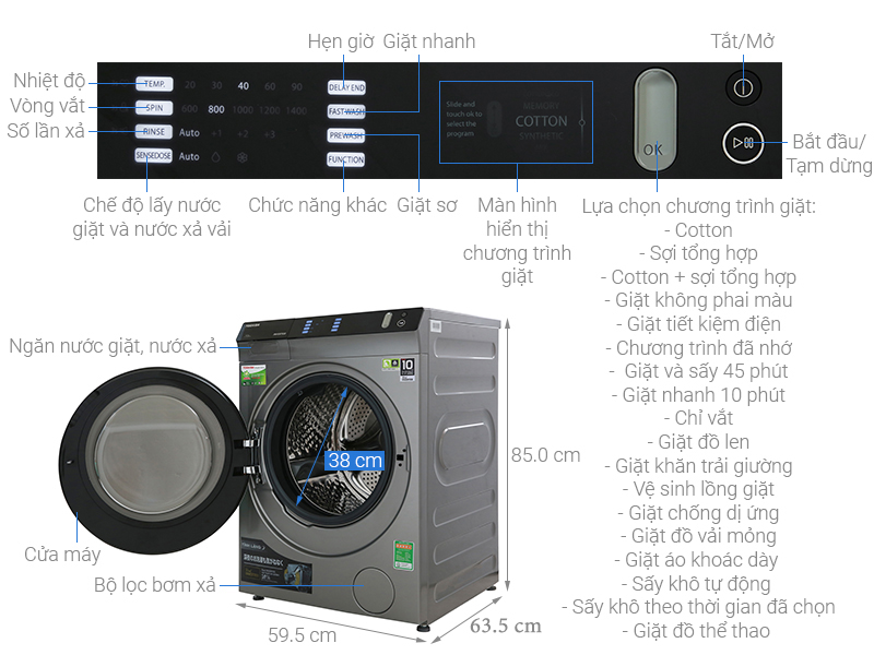 Máy giặt sấy Toshiba Inverter 8 Kg TWD-BH90W4V(SK) Cung cấp bởi CÔNG TY TNHH SẢN PHẨM TIÊU DÙNG TOSHIBA VIỆT NAM