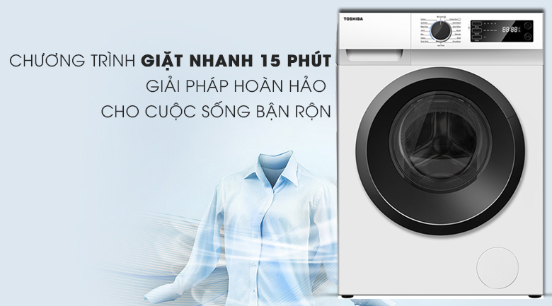 Chế độ giặt nhanh 15 phút giúp giặt nhanh và hiệu quả, tiết kiệm điện, nước và thời gian một cách tối ưu.