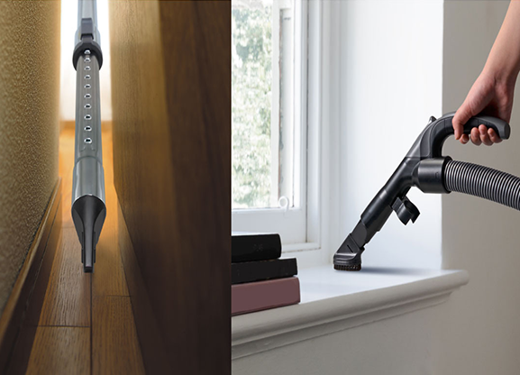 Sử dụng đầu hút khe, bàn chải quét bụi cùng nhiều phụ kiện tiện lợi khác giúp làm sạch mọi ngóc ngách của căn phòng.