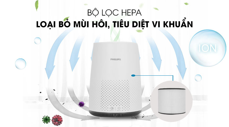 Lọc hiệu quả 99,5% các hạt nhỏ cỡ 0,003 µm, các chất gây kích ứng da nhờ bộ lọc HEPA.