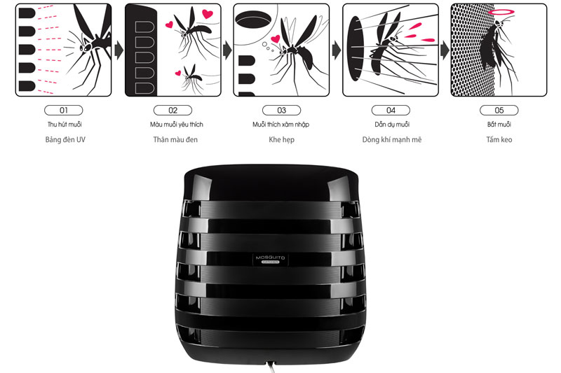 Bắt muỗi tối ưu với đèn UV, an toàn cho sức khỏe.