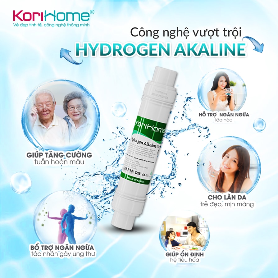 Bên cạnh đó, màng lọc Hydrogen Alkaline tạo nước kiềm (Alkaline) trung hòa axit giúp chống oxy hoá, ngăn ngừa các tác nhân gây lão hóa, gây ung thư, tiểu đường, cao huyết áp,...