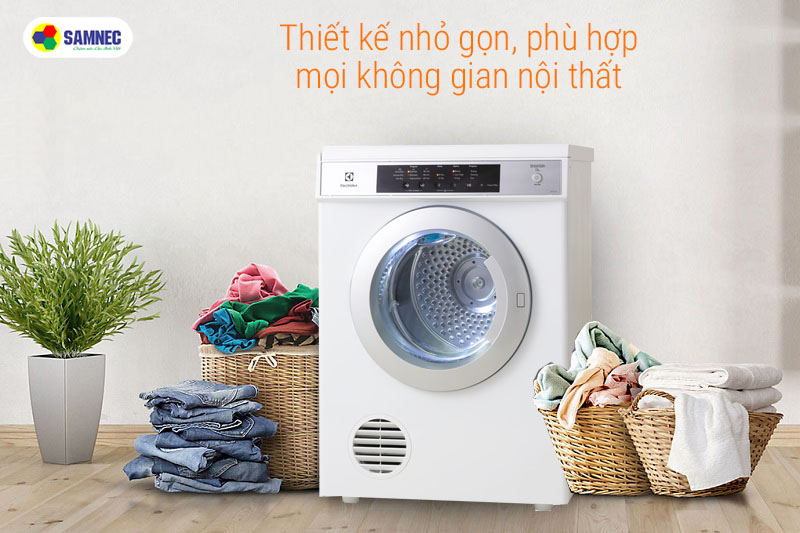 Đối với các hộ gia đình sống tại chung cư hay những gia đình có diện tích ban công nhỏ,... máy sấy là một giải pháp tiết kiệm không gian tối ưu. Thay vì phải tìm không gian mắc dây để phơi, máy sấy sẽ giúp bạn làm khô quần áo nhanh mà lại còn thẩm mỹ và hiện đại. Thêm vào đó, diện tích của một chiếc máy sấy chắc chắn bao giờ cũng nhỏ hơn diện tích phơi đồ tự nhiên.