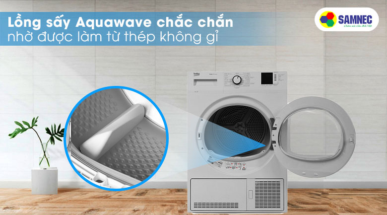 Lồng sấy của máy sấy Beko được làm từ chất liệu thép không gỉ, tăng độ bền cũng như hiệu suất hoạt động của sản phẩm.