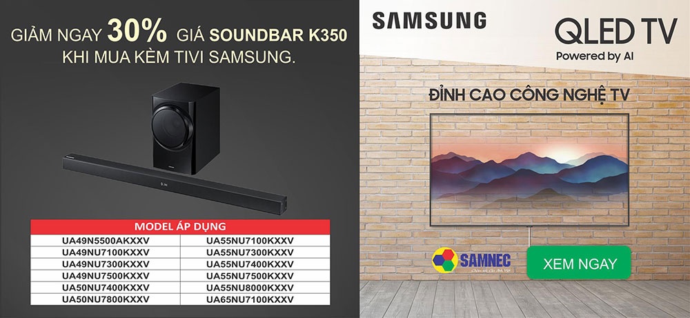Công ty CPQT Samnec thông báo chương trình khuyến mãi giảm 30% mua loa Samsung K350 khi mua kèm Tivi Samsung