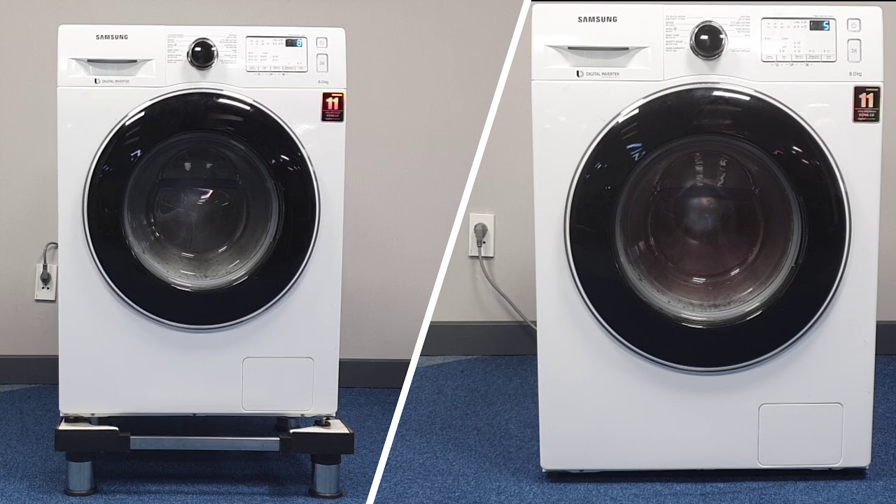 + Trước khi đặt máy giặt ở vị trí nào, bạn nên gia cố vị trí ấy thật vững chắc để đảm bảo cân bằng cho máy giặt khi hoạt động.