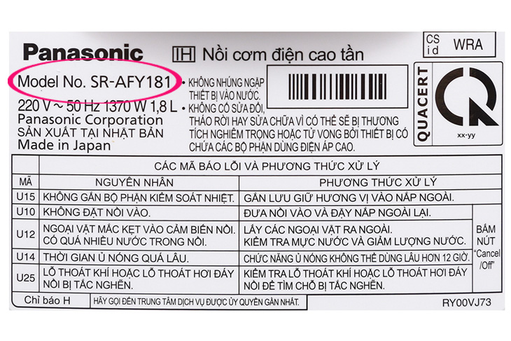 Bạn có thể kiểm tra thông tin sản phẩm ở phần tem dán trên thân nồi, “Mã sản phẩm” hay "Model" của nồi cơm điện cao tần bạn đang dùng để thuận tiện hơn khi sử dụng và kiểm tra lỗi cho nồi cơm.